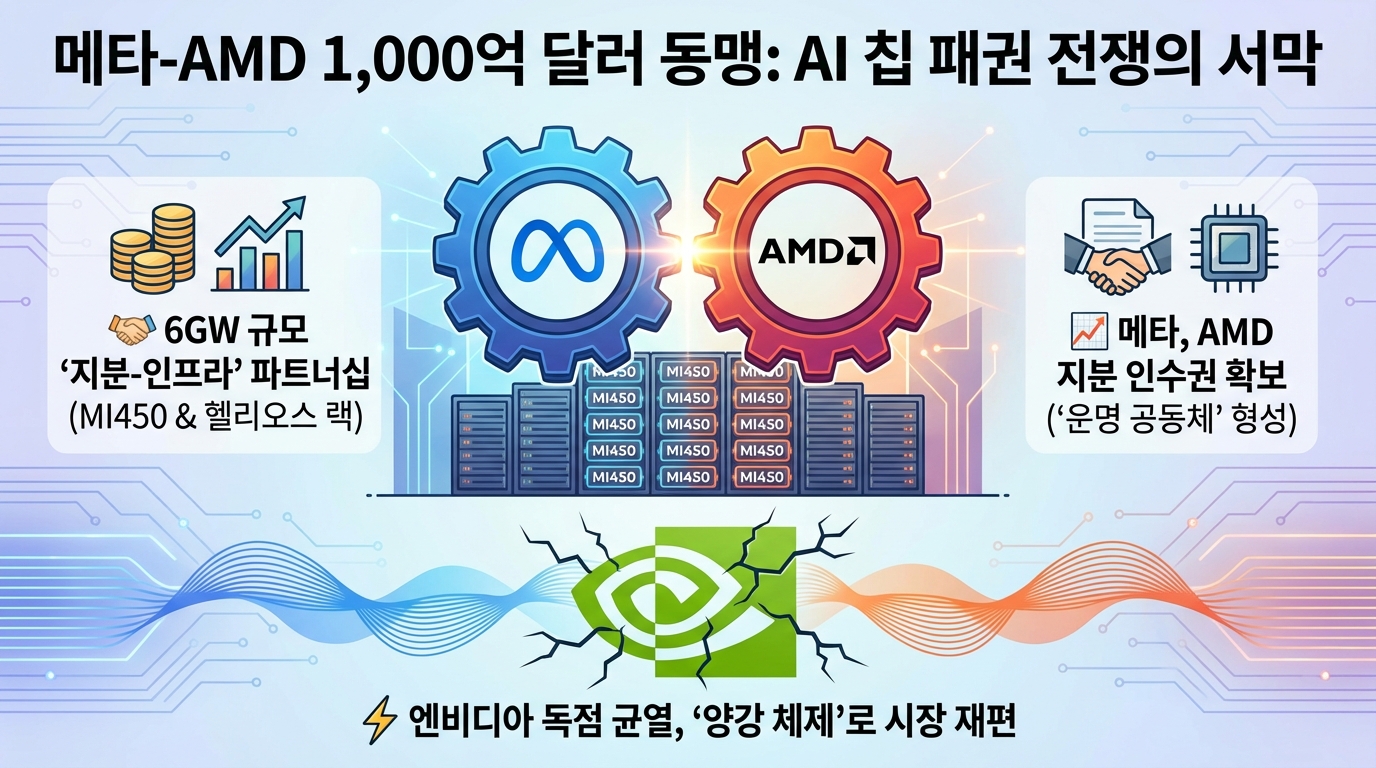 메타-AMD 1000억 달러 지분 동맹, 엔비디아 독점 깨는 AI 인프라 대전환