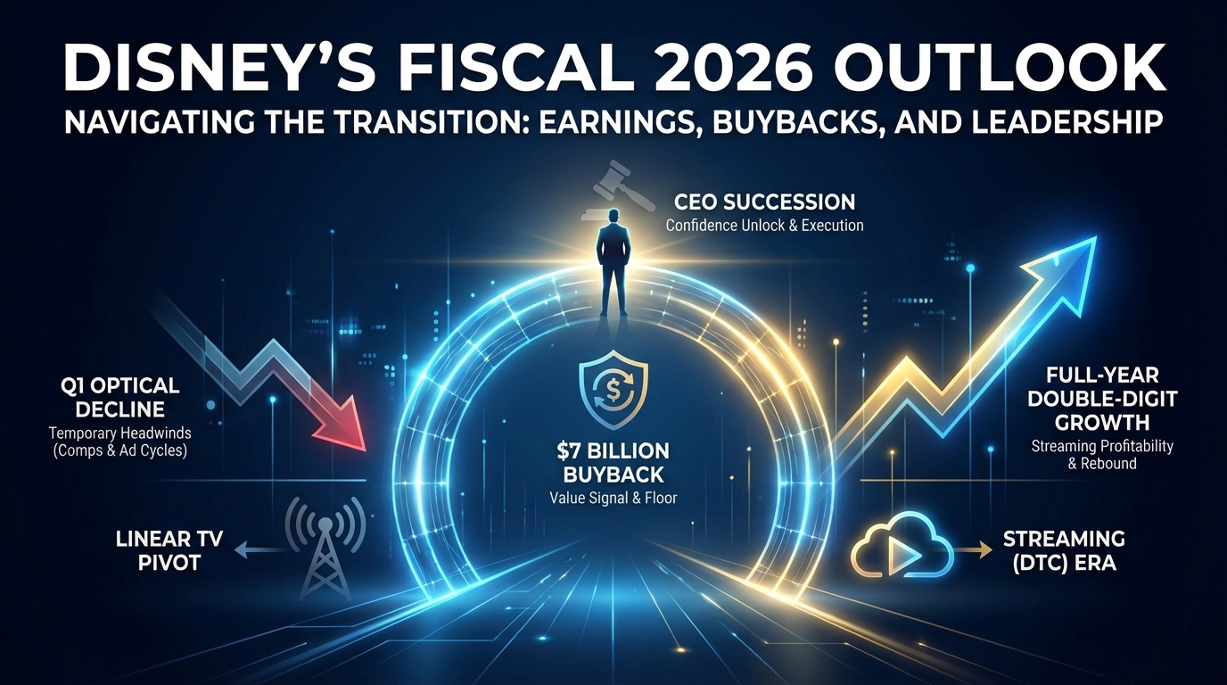 The following report analyzes Disney’s fiscal 2026 outlook, addressing the projected earnings decline, the impact of the CEO succession, and the strategic pivot from linear TV.