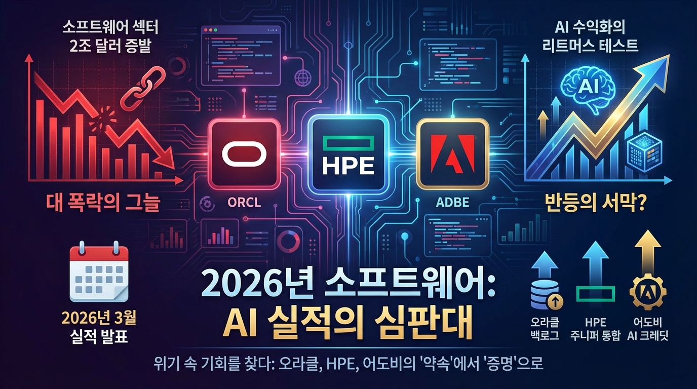 - 오라클·HPE·어도비 3사의 실적 발표가 2026년 3월 10~12일에 집중되며, 소프트웨어 업종 전반의 '2조 달러 폭락' 이후 AI 수익화 증명의 리트머스 테스트가 된다. 소프트웨어 주식이 연초 대비 20~30% 하락한 가운데, 실적 결과에 따라 밸류에이션 재평가의 분기점이 형성될 수 있다.